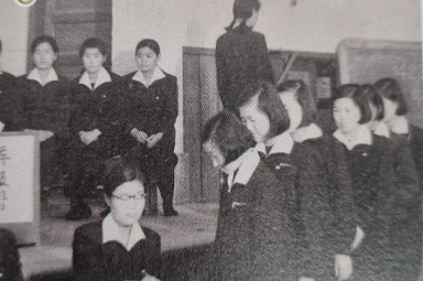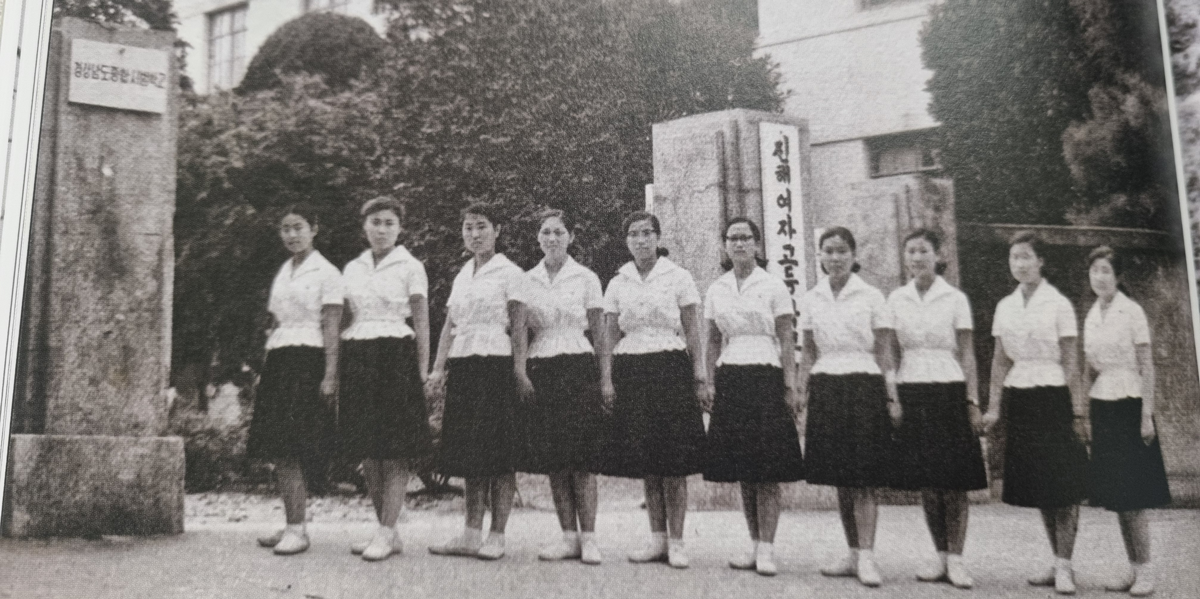 1923년 ‘진해공립고등여학교’가 문을 열었다. 당시 개교식은 4월 23일, 일출통 18번지에 위치한 가교사(임시 교사)에서 진행되었으며, 입학시험을 통해 선발된 200명의 학생이 4개 학급으로 편성되어 수업을 받았다. 같은 해 8월 23일, 신축 교사로 이전하여 수업이 진행되었으며, 10월 17일에는 신축 교사 준공식이 열렸다. 이후 1951년 5월 20일, 문교부에 본교의 공립중학교 개편을 신청하였고, 승인됨에 따라 8월 31일 ‘진해여자고등학교’로 교명이 변경되었다.